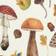 Treten Sie ein in eine Waldlandschaft mit diesem Muster mit wilden Pilzen, Herbstblättern, Beeren und Eicheln. Jedes Element, das in kräftigen Herbstfarben gestrichen ist, bringt das Wesen des Waldes zum Leben und zeigt das Diversity und den Charme der Natur.