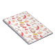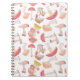 Notebook-Design: Muster des wilden Pilzes auf weißem Hintergrund. Das Design wurde mit handgemalten Aquarellpilzen in Rot- und Brauntönen entworfen.