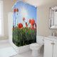 Blume von Wildrot-Orange Poppies Dies ist ein schönes Naturfoto. Ein Feld wilder Blume mit roten Orangenmohn und lila wilden Blume. Es gibt grünes Wildrasen und einen blauen Himmel. Die Sonne scheint fast an einem schönen Frühlingstag.
