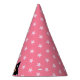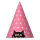 Wilde schwarze Katze und rosa Sternmuster auf Korallenrosa Hintergrund Party Hat. WILD-Text kann personalisiert sein.