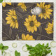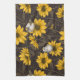 Wilde Sonnenblumen und goldfarbene Vögel/gelb Geschirrtuch