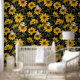 Wilde Sonnenblumen und goldfarbene Vögel/gelb und Tapete