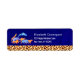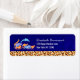 Adressetiketten mit einem exotischen, orangefarbenen Leopardenrand am unteren Rand. Illustriert mit einem digitalen Aquarellbild einer Herde wilder Tiere, die zusammen laufen. Zu den Tieren zählen ein springender Delphin, eine Giraffe, Elefant, Känguru, Nashorn, Löwe und Leopard. Der Hintergrund ist eine bläulich lila Farbe.