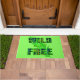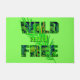 Doormat mit der Beschriftung "Wild und frei" verziert mit einem Muster von Dschungelfarnen und Blätter, und einer Palmenfront, in den Farbtönen Blau und Schwarz