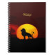 Wilder Löwe, Sonnenaufgang & Kalligraphie auf eine Notizblock