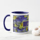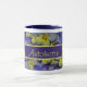 Diese Tasse kennzeichnet ein volles Umgriffsbild von schönem Blauem und gelber "Johnny springen herauf" Pansy Blüten, alias "Viola, die" Tricolor sind. Empfindlich und nett, egal was Sie sie nennen. Diese Tasse schließt einen Raum für Ihren Namen ein.