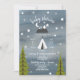 Eine Babydusche mit dunkelblauem, inspiriertem Hintergrund mit weißem Text, umgeben von Sternen und Abbildungen von Bergen mit Halbmond, Tipi und immergrünen Bäumen. Personalisieren Sie mit Details zu Ihrem Anlass.