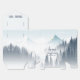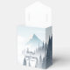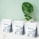 Ein mysteriöser, grauer Wald mit einem romantischen, weißen Nebel um die Kiefern und Berge im Hintergrund ist eine große Gastgeschenk Hochzeit für Wildnis. Die Typografie zeigt alle Kappen mit einer schönen Signatur geblüht auf den Buchstaben dieses hübschen Empfang Gunst Box.