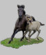Ein Duelmen Ponyfohlen mit seiner Mamma, Dunmantelfarbe, an einem Galopp. Dülmen Ponys sind die letzten wilden Pferde in Deutschland, dieses lebhaftwilde der gebürtigen Pferdezucht im Merfelder Bruch.
