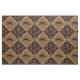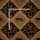 Die Abwechslung quadriert Set auf einer Diagonale eines tiefen schokoladenbraunen wilden Sets der Katzen-Silhouette (Cheetah, Puma, Panther, Leopard, Ocelot, Jaguar) in einer Beschaffenheits-Diamantform des Medium-braunen Imitats grasartigen, die im Muster der hohen Blätter des Grases eingefaßt wird. Wechselndes Muster mit einem Dunkelschokolade Braun (fast Schwarzes) und Tierdruckhintergrund der tan Giraffe.