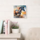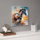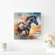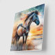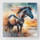 Wildes Pferd auf Grassy Düne bei Sonnenuntergang Quadratische Wanduhr