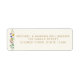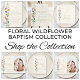 This floral Baptism return address label features watercolor wildflowers with gold text on a soft cream background.