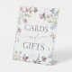 Direct your guests with this beautiful "Cards and Gifts" wildflower sign. Adorned with watercolor blooms and butterflies to coordinate with your boho theme. An elegant and practical addition to your baby shower gift table.