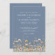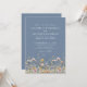 Bring a touch of nature’s elegance to your wedding with this refined invitation design, now featuring a soft dusty blue or periwinkle background on both sides for a calm and romantic feel. Delicate wildflowers form a graceful border, showcasing muted pink, yellow, lavender, and blue blooms paired with gentle green leaves and stems for a fresh, garden-inspired look.