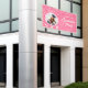 Wildflower Pink Striped Bows & Ribbons Graduation Banner