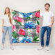 Wildflower red and blue peonies flowers pattern in fleecedecke