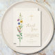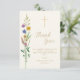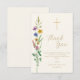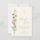 Diese florale Tauf-Dankeskarten-Funktion Wildblumen und ein Kreuz auf einem weichen cremefarbenen Hintergrund.