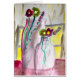 Art frpm an original watercolor painting of colorful wildflowers in a glass vase in simple abstract line art. Simple and unique whimsical art.
