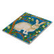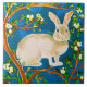 Keramik Kachel in einer Abbildung eines wilden Kaninchens, umgeben von blühenden Baumzweigen, vor einem dunkelblauem Hintergrund