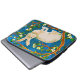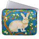 Laptop-Ärmel in einer Abbildung eines wilden Kaninchens, umgeben von blühenden Baumzweigen, vor dunkelblauem Hintergrund