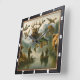 Diese quadratische Wanduhr besticht durch eine reiche Tapisserie an der frischen Luft, die Jäger, Fischer und eine Vielzahl an wild lebenden Tieren wie Hirsche, Bären, Enten und Leoparden zeigt. Die detaillierte Kunst erfasst das Wesen der Wildnis und des Outdoor-Strebens und macht sie zu einem idealen Dekorationsstück für eine Lodge, Hütte oder jeden Raum, der Natur und Abenteuer zelebriert.