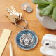 Auf diesem einzigartigen Schlüsselanhänger ist ein atemberaubendes Bild eines weißen Tigers auf blauem Hintergrund. Tiger, Hintergrund und Rand werden in einem farbigen Glasstil dargestellt. Elegant! Stellen Sie sicher, dass Sie die passenden Ohrringe und Halsketten in unserem Shop sehen.