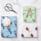 Aquarellbilder von einem blauen Jay, Zedernwinkeln und Kardinal schmücken dieses Set von Geschenkpapier.