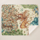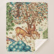 Sherpa Blanket in einem William Morris Wandteppichdesign von drei Hirschen neben einem Bach in einem Fantasy-Wald in den Schattierungen von sanften Grün und Aqua, vor einem beigen Hintergrund