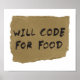 Coder auf der Suche nach Arbeit...kodiert für Lebensmittel. Geld ist optional. Ideal für Programmierer, Informatiker und Ingenieure auf der Suche nach Anstellung, Essen oder einfach nur einem großen Lachen.