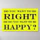 Will du Recht zu haben oder Will du glücklich zu sein? Design auf gelbem Hintergrund.