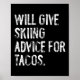 Will Give Skiing Advice For Tacos Funny Ski Coach Poster