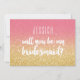 Will You Be My Bridesmaid Gold Pink Ombre Glitter Einladung