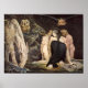 William Blake Hecate Poster. Pen, Tinte und Aquarelldruck aus dem Jahre 1795. Obwohl der englische Dichter und Künstler William Blake einen Großteil seiner Illustrationen den Werken anderer großer Dichter wie Dante, Milton und Shakespeare widmete, verbrachte er auch einen großen Teil seiner Zeit damit, seine eigene Poesie zu illustrieren. Hekate oder The Night of Enitharmon’s Joy ist eine Illustration aus Blake’s Europe: Ein Prophezeiung seiner weiblichen Figur Enitharmon (oft mit Hecate assoziiert), die mit der Hand auf einem magischen Buch sitzt, in dem zwei Kinder sich an den Schultern beugen. Ein Esel kaut unter der Eule falscher Weisheit und eines Krokodils. Über Hecate fliegt eine Katzenfledermaus. Das ist ein dunkles und unheimliches Werk, das ein wunderbares Geschenk für die Fans von William Blake, englischer Kunst und gotischer Malerei ist.