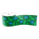 Das Ribbon in einem Vintagen William-Morris-Damaskus-Muster aus anemonischen Blume und Blätter, digital verbessert und farbig - smaragdgrüne Blätter und Blume in Cerulean- und Kobaltblau auf einem dunkelgrünen Hintergrund