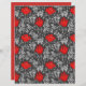 Papier in einem Vintagen William Morris Blumendamaske-Muster aus anemonischen Blume und Blätter - hellsilbergraue / graue Blätter und Blume in Tiefenlippenstift auf dunkelgraigem Hintergrund