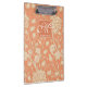NewParkLane - Mit dieser personalisierten Jugendstil-Zwischenablage, die ein pfirsichfarbenes und beige Blumenmuster des britischen Künstlers William Morris (1834-1896) mit einem Rahmen für Ihren Namen und ein Monogramm in eleganter Schrift-Typografie aufweist, können Sie sich organisieren. Morris ist bekannt für seinen Einfluss auf die Kunst- und Handwerksbewegung und sein Tapetendesign. Einfache Anpassung in Zazzle mit eigenem Text für ein personalisiertes Design. Alle Textstile, Farben und Größen können an Ihre Bedürfnisse angepasst werden. Karo diese Auflistung für passende Elemente aus. Haben Sie spezielle persönliche Designwünsche? Nehmen Sie Kontakt mit mir auf.