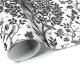 Verpackungspapier in einem Kunst Williams Morris Nouveau Nehmen auf einem traditionellen "der Baum des Lebens" Muster, die Fantasiebäume kennzeichnend, die durch die Niederlassungen gefüllt werden mit exotischen Blumen und Vögeln umgeben werden, schwärzen und Schatten von Grauem/von Grau, auf einem weißen Hintergrund