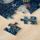 William Morris Tapestry (1834-1896) Vogelmuster. Original aus dem MET-Museum. Das Kunstwerk ist eine fotografische Reproduktion eines Textils auf der Grundlage des William-Morris-Designs "Birds", eines auffallenden Textildesigns, das das zarte Zusammenspiel zwischen Vogelelementen und botanischen Elementen einfängt. Im Mittelpunkt stehen Vögel mit weißem und braunem Gefieder, die sich vor dem Hintergrund eines üppig blauen und grünen Blattwerks deutlich abheben. Das detaillierte Design ist in eine Tapisserie geflochten, die durch symmetrische und sich wiederholende Motive gekennzeichnet ist. Florale und natürliche Elemente sind kunstvoll miteinander verwoben und tragen zu einer harmonischen und verzierten Ästhetik bei. Dieses Stück vermittelt ein Gefühl von faszinierender Schönheit durch die sorgfältige Abbildung von Vögeln und Blattwerk. Das Kunstwerk mit seinem Schwerpunkt auf Symmetrie und Stilisierung lädt die Zuschauer ein, die Beziehung zwischen der Komplexität der Natur und der strukturierten Eleganz des Designs zu erkunden. Die Kontrastfarben und Detailmuster schaffen ein visuelles Erlebnis, das reich und zusammenhängend ist, und veranschaulichen die Integration von naturlich inspiriert Motiven in ein Textil-Medium.