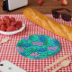 William Morris Chrysanthemums, Aqua und Violet Pappteller