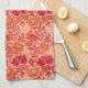 Handtuch im Vintagen William Morris, Jugendstil, floraler Druck von stilisierten Chrysanthemen, digital verstärkt und farbig, in Korallenorangen, tiefer Mandarin und sanfter Orange, auf pastellorangefarbenem/apricotfarbenem Hintergrund