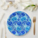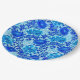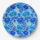 Papier Teller in einem Vintagen William Morris, Jugendstil, floraler Druck von stilisierten Chrysanthemen, digital verstärkt und farbig, in den Farbtönen Denim Blau und Tiefenindigo auf einem hellblauen und weißen Hintergrund