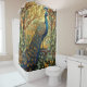 Ein Pfau im William-Morris-Stil in einem Wald, der schön auf einen schönen Duschvorhang gelegt wurde.