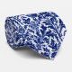 Krawatte in einem Vintagen Damastmuster Williams Morris der Distel-Blumen und -Blätter, im tiefen Kobaltblau, auf einem weißen Hintergrund, digital erhöht und gefärbt