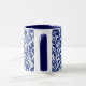 Kaffee-Tasse in einem Vintagen Damastmuster Williams Morris der Distel-Blumen und -Blätter, im tiefen Kobaltblau, auf einem weißen Hintergrund, digital erhöht und gefärbt