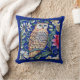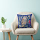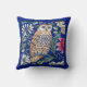 Throwkissen in einer Kunst Nouveau, Tapisseriemuster Williams Morris, eine tan und beige Eule gegen Fantasie-Blumen und -Blätter, mit einem tiefen Kobaltblauhintergrund und -grenze kennzeichnend