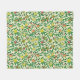 Fleece Blanket in einem William Morris Art Nouveau Muster von Zitronen, Granatapfelsen und Pfirsichen, mit Blüten, auf grünen Zweigen - Früchte in gelb und korallorange, mit grünen Blätter, auf gemustertem, gelben und weißem Hintergrund