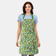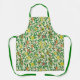 Schürze im Jugendstil-Stil von William Morris, Limes, Granatapfelsen und Pfirsiche, mit Blüten, an grünen Zweigen - Früchte in Gelb und Korallenorange, mit grünen Blätter, mit gemustertem, gelben und weißem Hintergrund