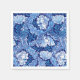 Papierservietten im William Morris Art Nouveau Textilmuster, digital verbessert und farbig - stilisierte Pfannkuchen und Blätter in Kobaltblau, hellblau und weiß, vor einem dunkelindigoblauen Hintergrund