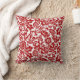 Throw pillow in a vintage William Morris Floral damask pattern, digitally enhanced and colored, in deep Chinese red on white background