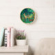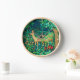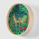 Uhr in einem William Morris-Wandteppich in einem Fantasy-Wald-Ambiente - hellgesprenkeltes Hirsch in einem üppigen, tiefblauen und grünen Hintergrund von Blätter und Blume, mit roten Tulpen versehen